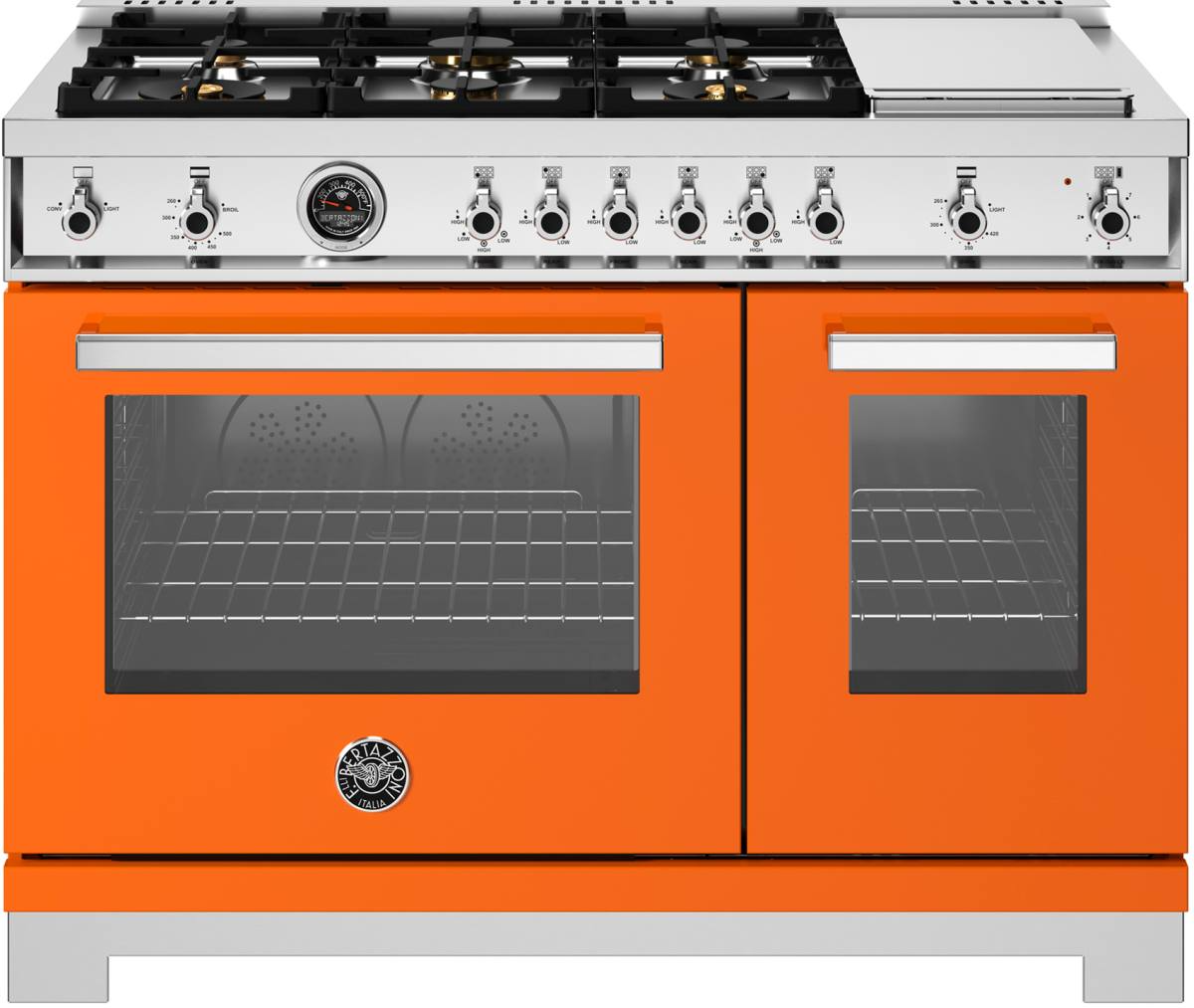 Bertazzoni engineers have worked to design a highly efficient worktop by reducing the flame-to-cookware distance for faster heating. More lateral space has been created between the burners so you can use larger cookware more effectively. This digital thermostat and user interface make cooking a large variety of dishes at exactly the right temperature simple. It constantly monitors the temperature at the heart of the dish and adjusts the oven temperature automatically for even cooking and perfect results every time.