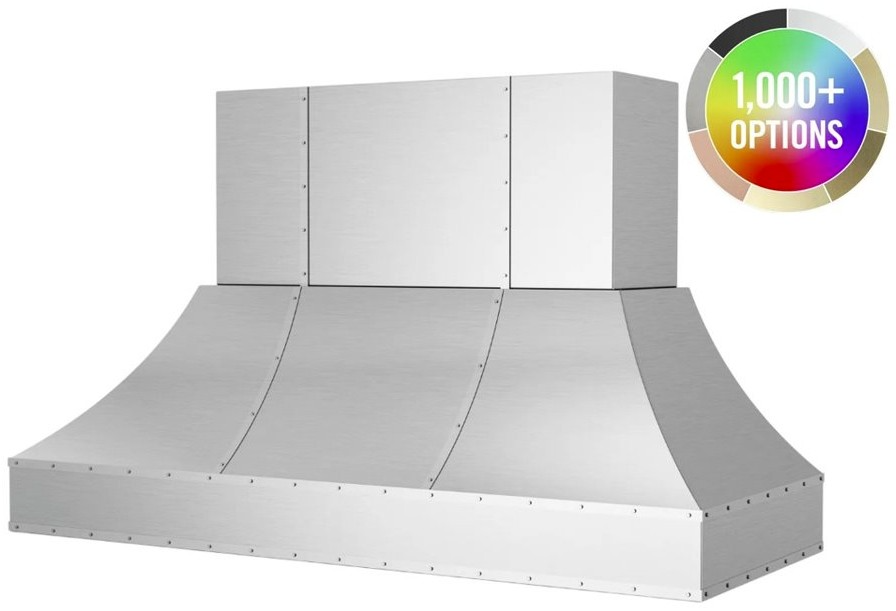 Metals & Strapping: Change your hood material from stainless steel to 14 different custom metals options including brass and copper. Plus, enhance your ventilation hood design by adding custom strapping and rivets to compliment other finishes in your kitchen.