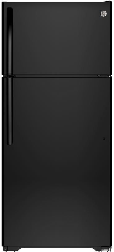 GE® 21.2 Cu. Ft. Top Freezer Refrigerator-Black with adjustable glass shelves and factory installed ice makerRead More