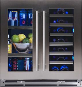 One side holds (66) 12oz cans at 34' to 50' F -the other side holds up to (28) 750ml bottles at 41' to 64' F