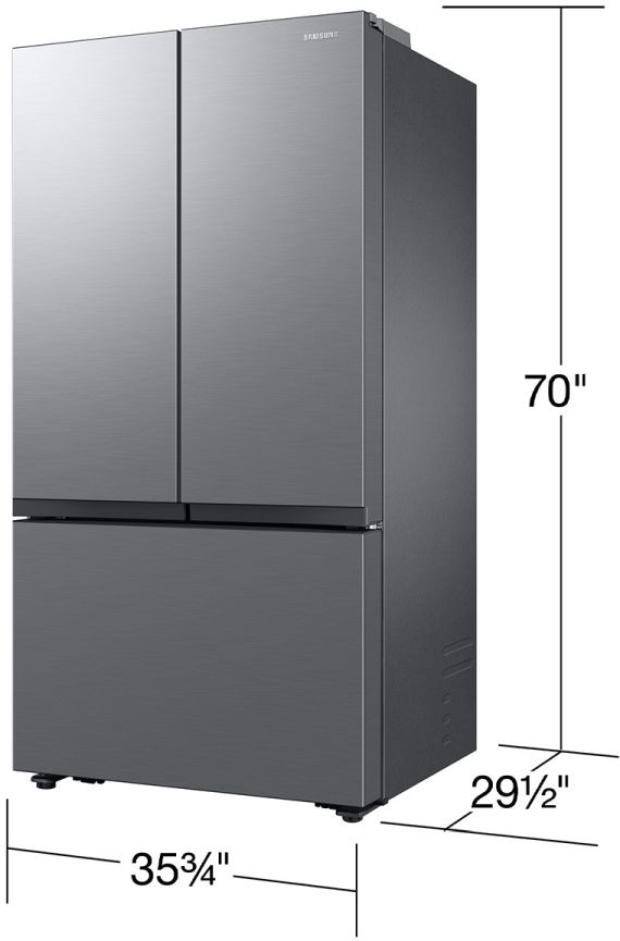 27 cu. ft. Mega Capacity 3-Door French Door Counter Depth refrigerator in a Stainless look finish. Dual Auto Ice Maker makes two types of ice – cubed, or Ice Bites™ that chill your drink faster. A flat-front design with recessed drawer handle blends beautifully into your kitchen.Read More