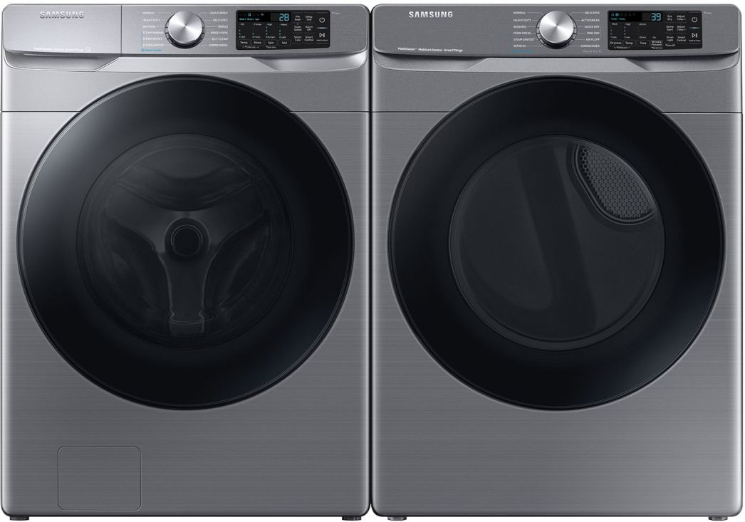 Samsung Platinum Front Load Laundry Pair with a 4.5 cu. ft. capacity front load washer and a 7.5 cu. ft. capacity front load gas dryer.Read More