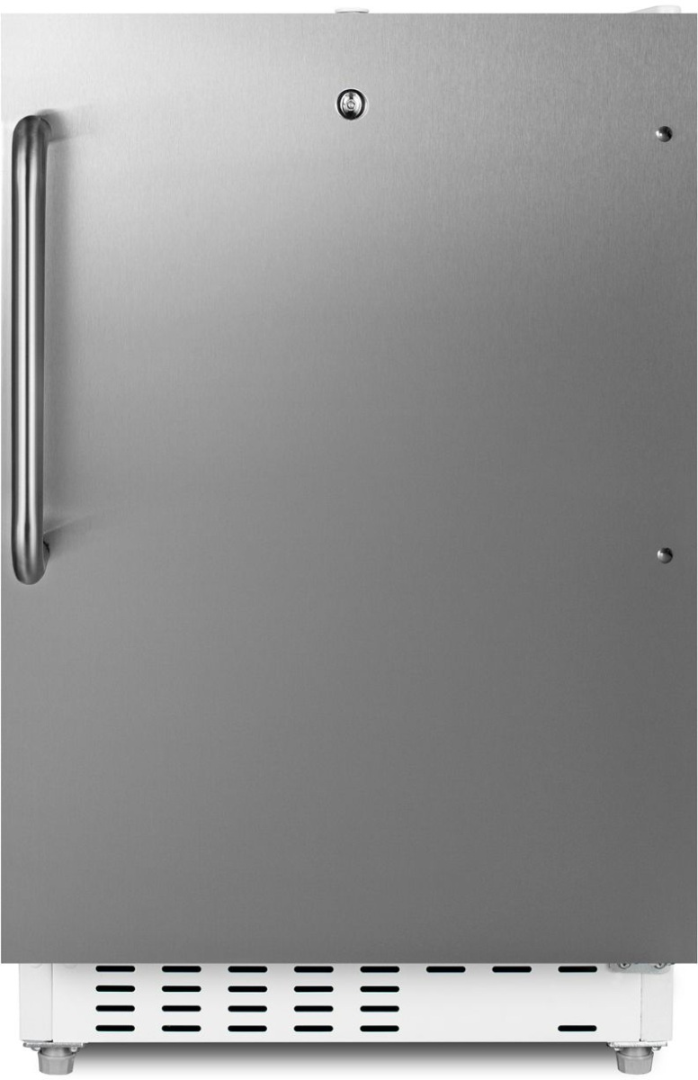 The fully finished textured white cabinet allows freestanding use, while the front-breathing system means this unit can be built-in with minimum clearance. The stainless steel, user-reversible door is 3" thick for efficient insulation, with a curved towel bar handle included for added convenience. This unit comes with a right angle cord to allow for easier placement without added depth. A factory-installed lock is conveniently located towards the top of the door to provide security as needed.