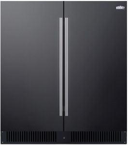Sized at 30" wide, the FFRF3070BL is an all-in-one side-by-side refrigerator-freezer. The front-breathing design allows built-in installation under counters, while the fully finished black cabinet also enables freestanding use. French doors allow you to separately store refrigerated and frozen foods. This unit comes in a jet black finish. The European style fully articulating hinging ensures seamless integration into your space. This unit includes a lock in the kickplate to secure both sections. A sealed back and right angle plug offer added space savings.Read More