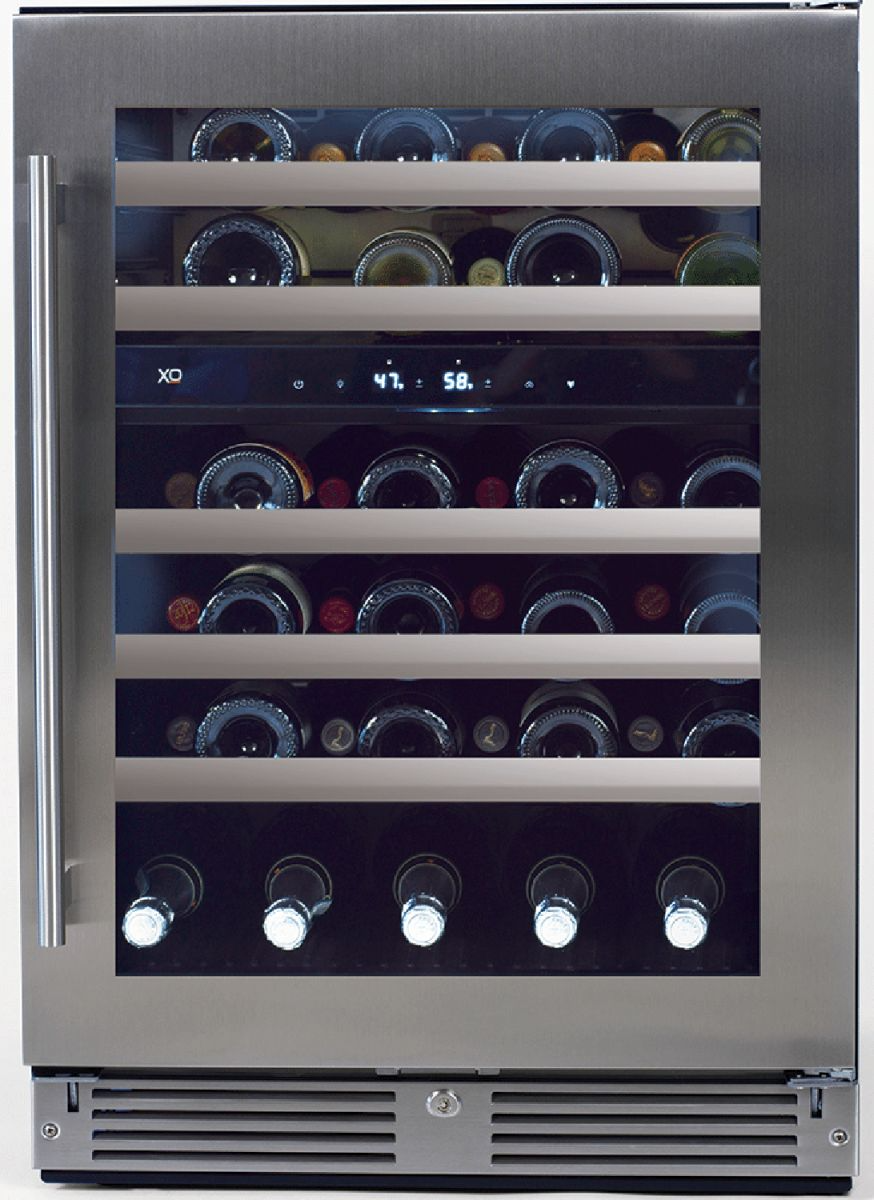 Red and white wines require different environments. XO’s Dual Zone wine cooler enables you to store and serve your favorite vintages from the same cabinet at just the right temperature. The upper racks will hold up to 16 bottles chilled between 41' to 50' F while the lower zone will hold up to another 30 bottles between 50' and 64' F.Read More