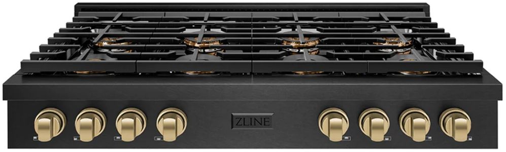 The ZLINE Autograph Edition 48 in. Paramount Gas Rangetop with 8 Burner DuoPro™ Cooktop in Black Satin Stainless Steel and Champagne Bronze Accents (PSRTBSZ-48-CB) features a high-powered gas cooktop with 6 hand-crafted Italian dual-ring brass burners and an expansive one-piece porcelain cooktop allowing you to master every meal.Read More