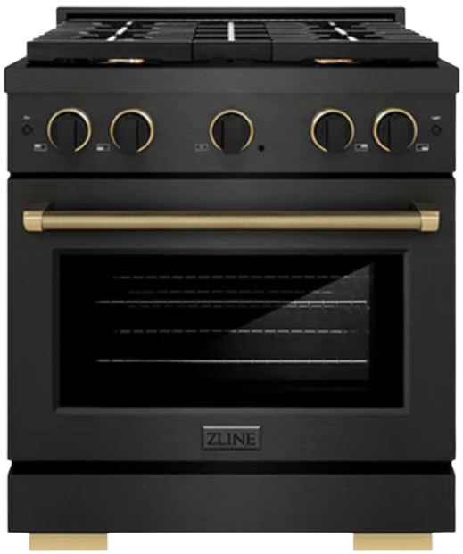 Luxury isn’t meant to be left desired—it’s meant to be attainable. The ZLINE Designer Collection 30 in. 4.2 cu. ft. Paramount Dual Fuel Range with 4 Burner Gas Cooktop and Electric Convection Oven in Black Satin Stainless Steel with Matte Black and Champagne Bronze Accents (SDRBSZ-30-MBCB)Read More