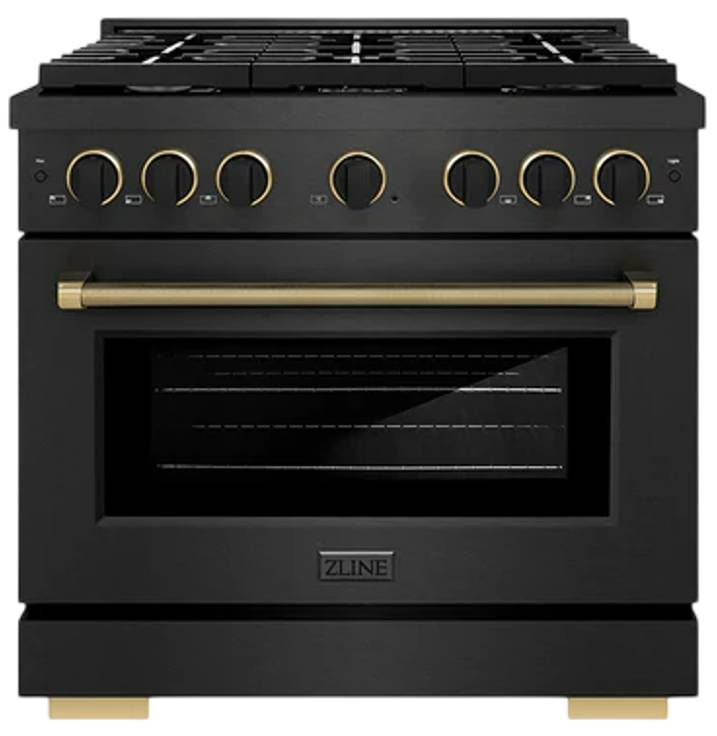 ZLINE Designer Collection - This limited release fuses an innovative Black Satin Stainless Steel base finish with detailed Matte Black and Champagne Bronze knob and handle accents to capture the essence of ZLINE’s design ethos of purposeful beauty paired with timeless functionality