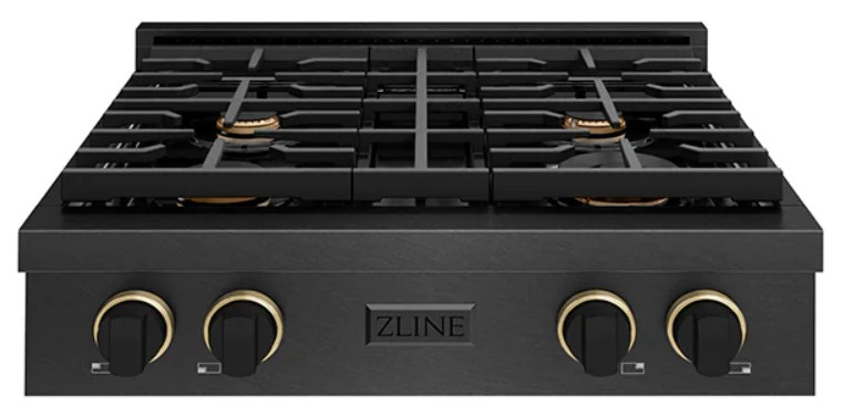 ZLINE Designer Collection - This limited release fuses an innovative Black Satin Stainless Steel base finish with detailed Matte Black and Champagne Bronze knob accents to capture the essence of ZLINE’s design ethos of purposeful beauty paired with timeless functionality