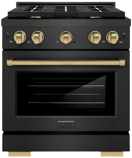 Luxury isn’t meant to be left desired—it’s meant to be attainable. The ZLINE Autograph Edition 30 in. 4.2 cu. ft. Paramount Dual Fuel Range with 4 Burner Gas Cooktop and Electric Convection Oven in Black Satin Stainless Steel with Champagne Bronze Accents (SDRBSZ-30-CB) combines the versatility of a gas cooktop with 4 Italian-made auto-reignition burners.Read More