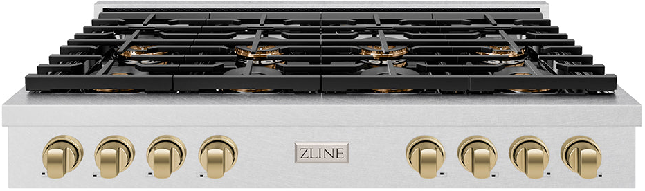 Customize your ZLINE Autograph Edition Paramount Gas Rangetop with DuoPro™ Cooktop with elegant Champagne Bronze knob and ring accents