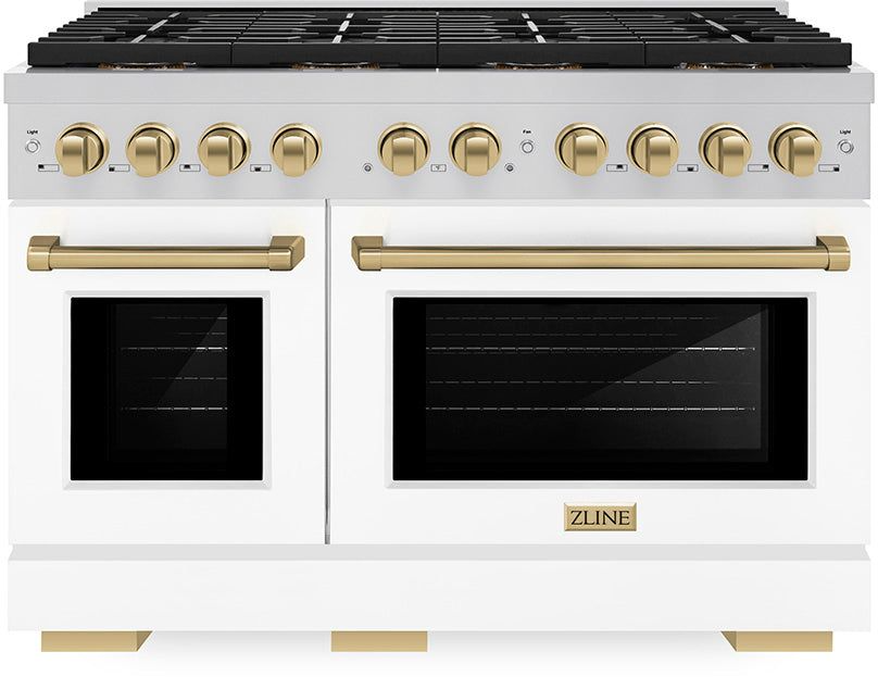 ZLINE Paramount Series Autograph Edition 48" Stainless Steel Pro Style Dual Fuel Range with White Matte Door and Champagne Bronze Accents
