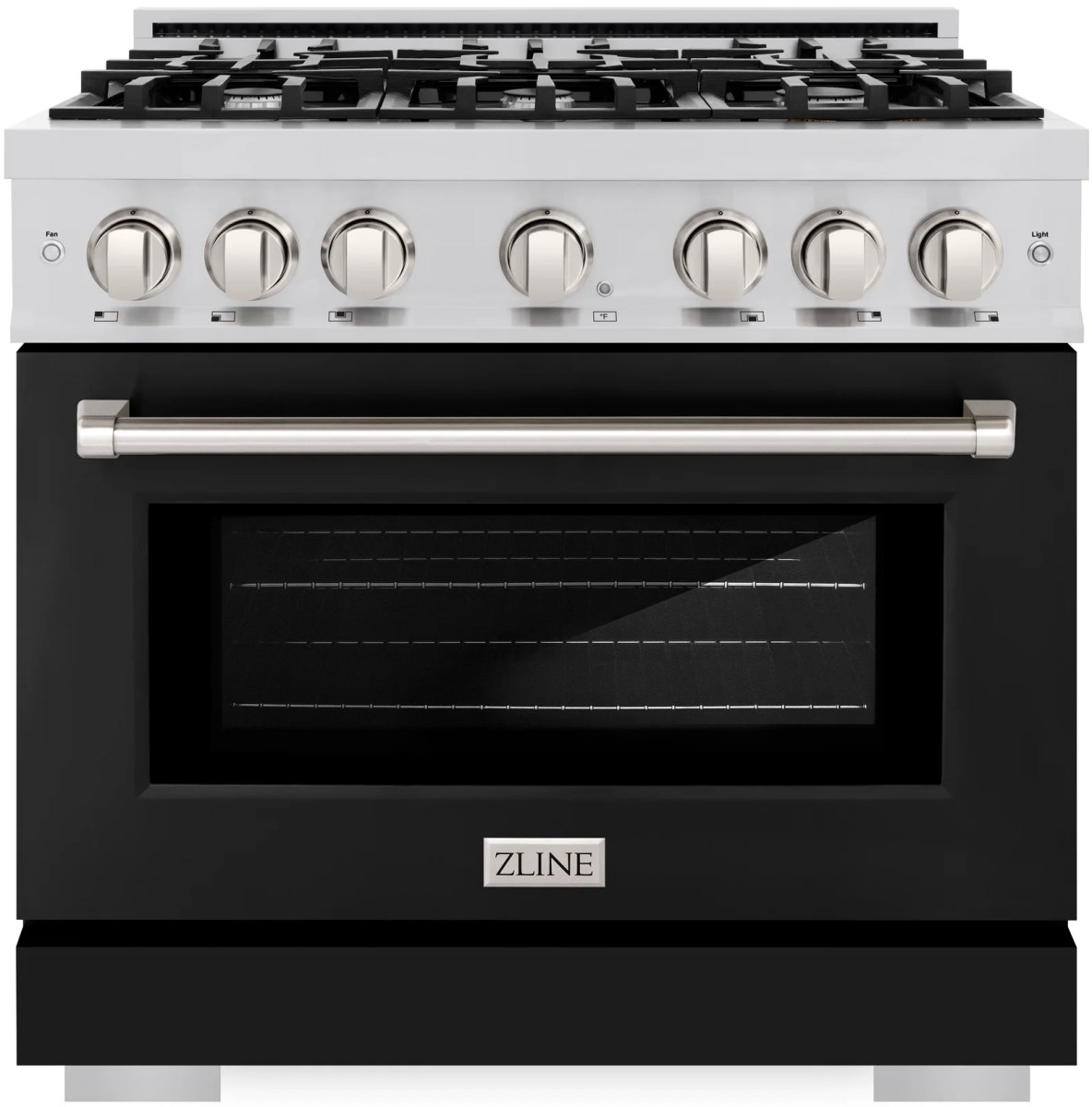The ZLINE 36 in. 5.2 cu. ft. Select Gas Range with 6 Burner Cooktop and Convection Gas Oven in Stainless Steel with Black Matte Door (HGR-BLM-36) combines the elegance of a hand-finished porcelain gas cooktop with 6 Italian-made auto-reignition burners, a gas convection oven with an energy-efficient cooling fan to ensure quiet operation, and a beautiful black matte door with a Horizon window design allowing you to master every meal.